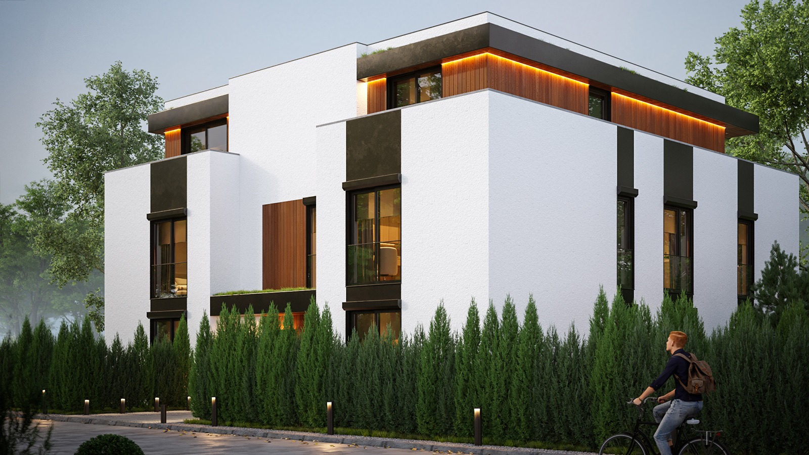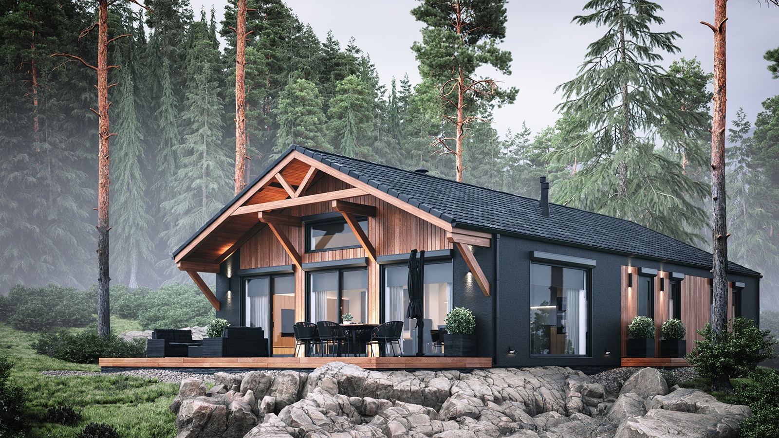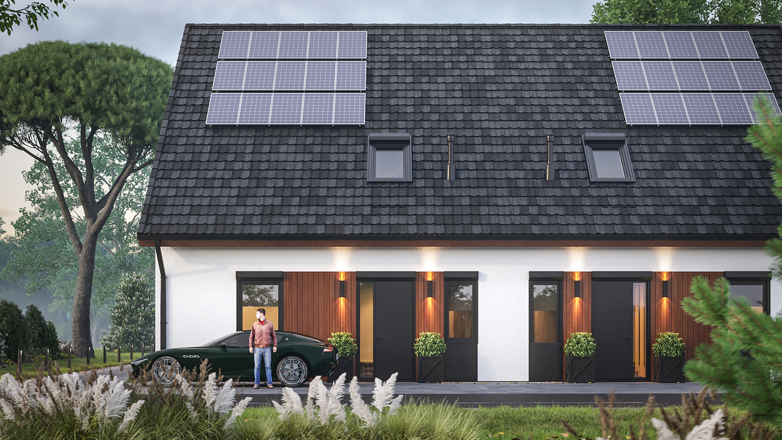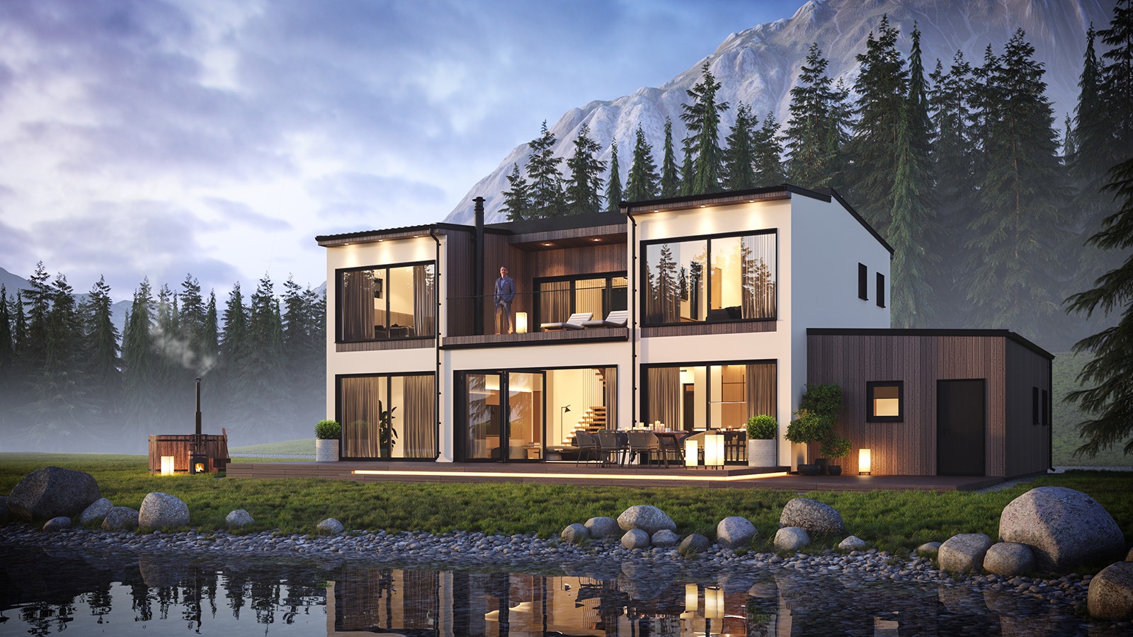 Eingeschossige und mehrgeschossige Gebäude unter Verwendung von Holzrahmen-Paneelen. Entsprechend dem KfW-Standard 40 Plus oder 55 mit QNG-Zertifizierung. Alle Vorteile des nachhaltigen Holzbaus. Planung, Produktion, Bau.
