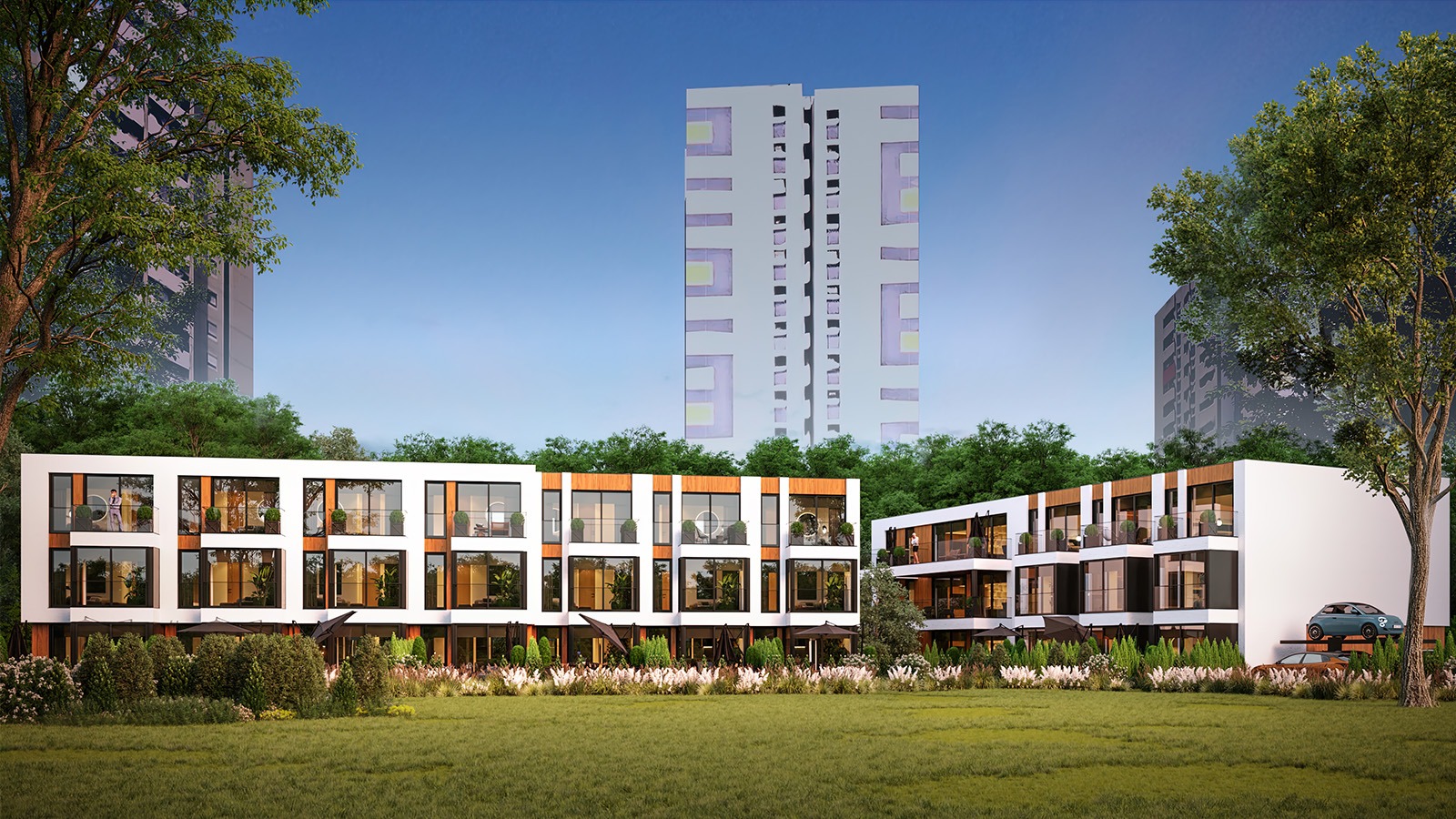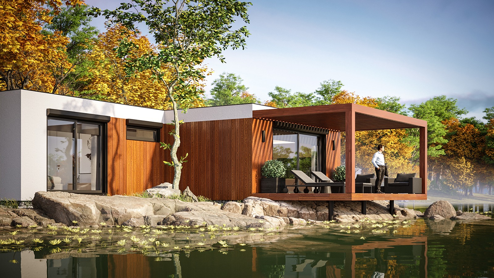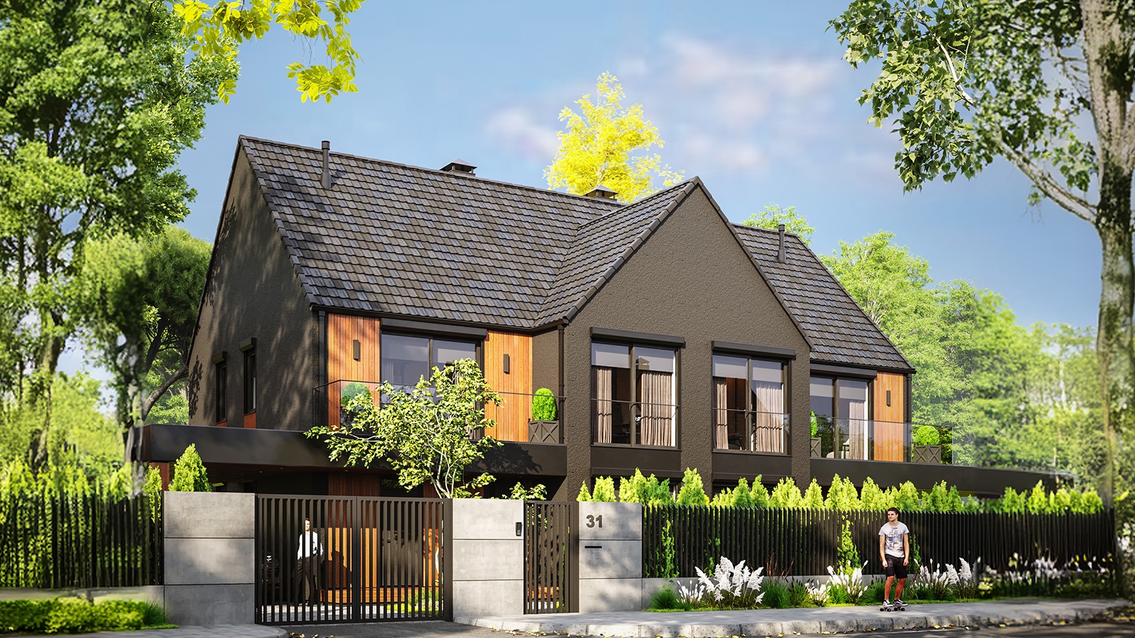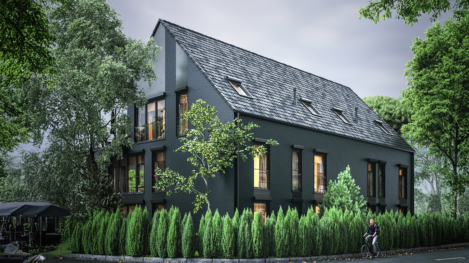 Eingeschossige und mehrgeschossige Gebäude unter Verwendung von Holzrahmen-Paneelen. Entsprechend dem KfW-Standard 40 Plus oder 55 mit QNG-Zertifizierung. Alle Vorteile des nachhaltigen Holzbaus. Planung, Produktion, Bau.