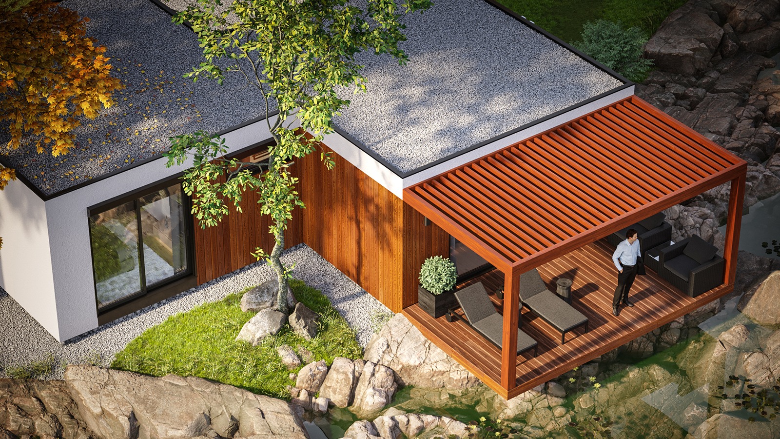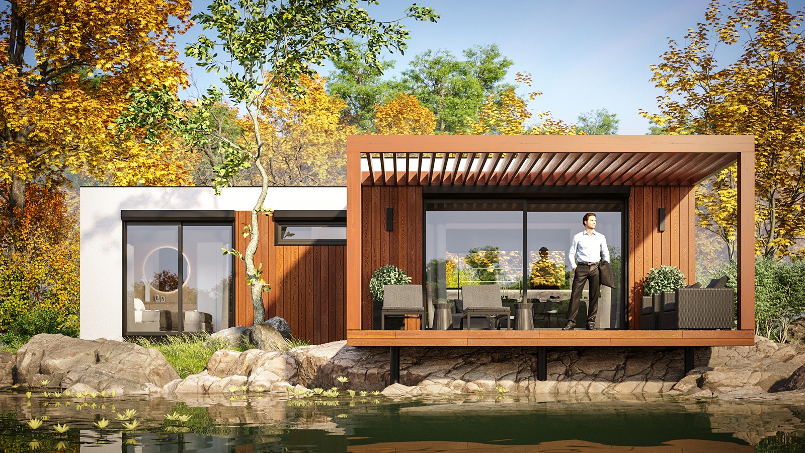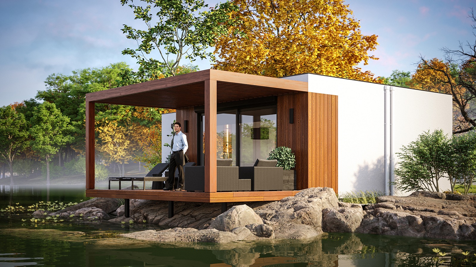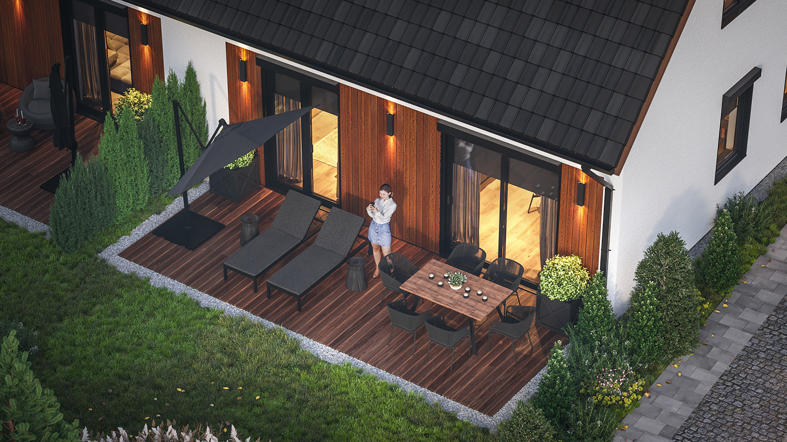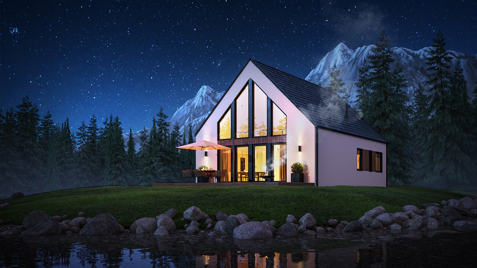 Eingeschossige und mehrgeschossige Gebäude unter Verwendung von Holzrahmen-Paneelen. Entsprechend dem KfW-Standard 40 Plus oder 55 mit QNG-Zertifizierung. Alle Vorteile des nachhaltigen Holzbaus. Planung, Produktion, Bau.