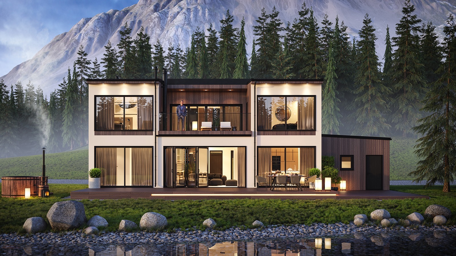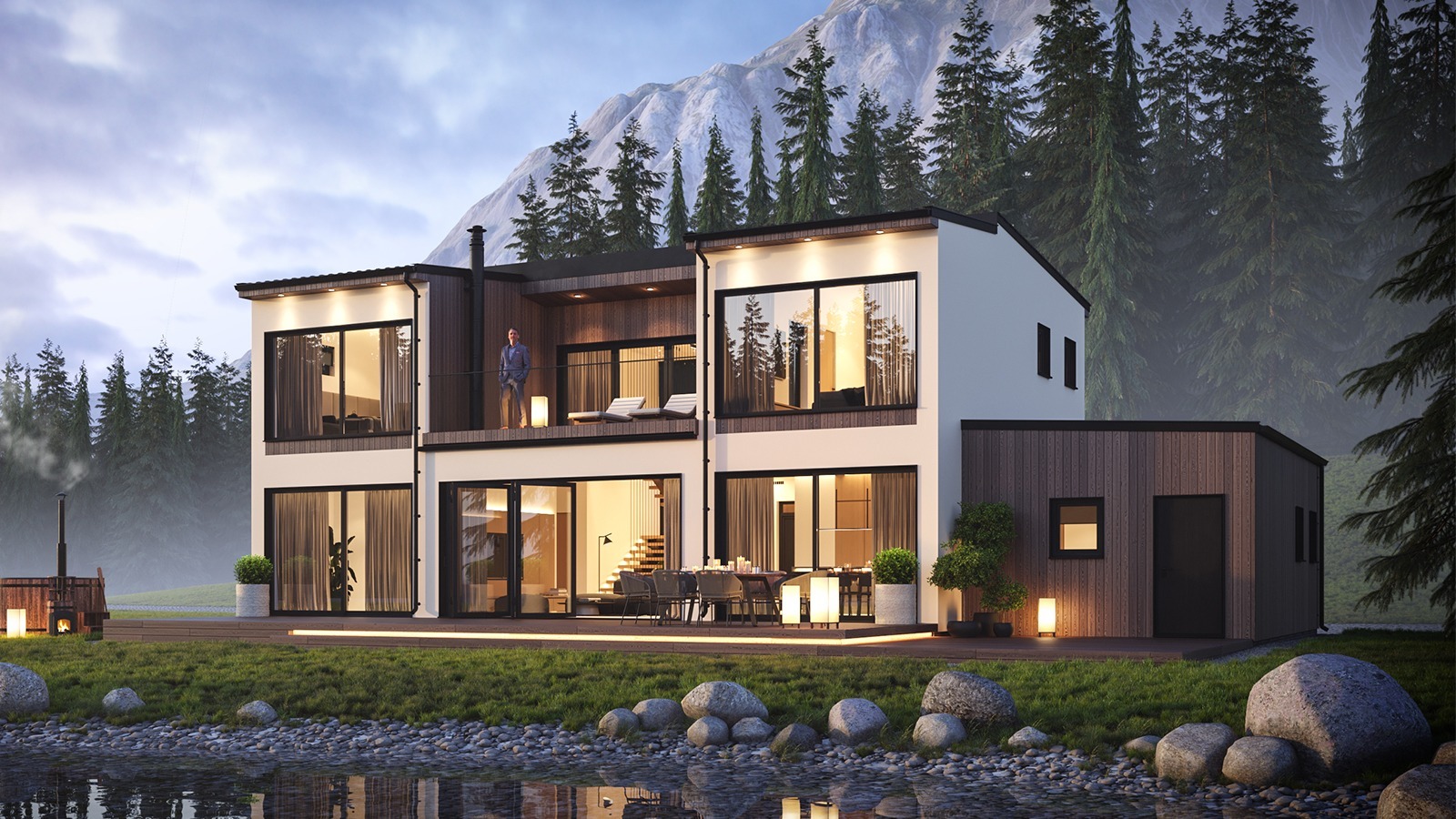 Verfügt über 12 Wohneinheiten mit eingebauter Garage