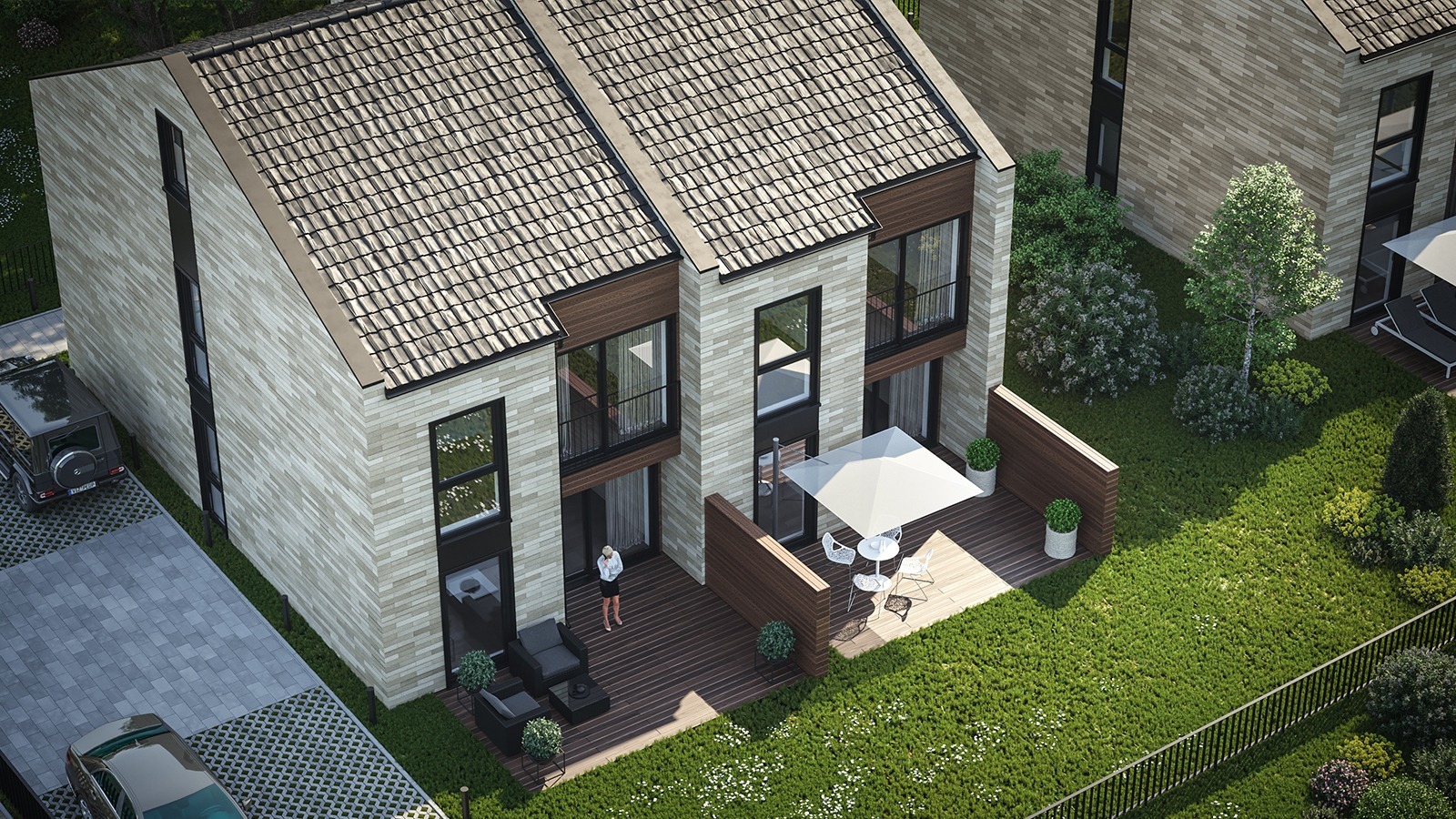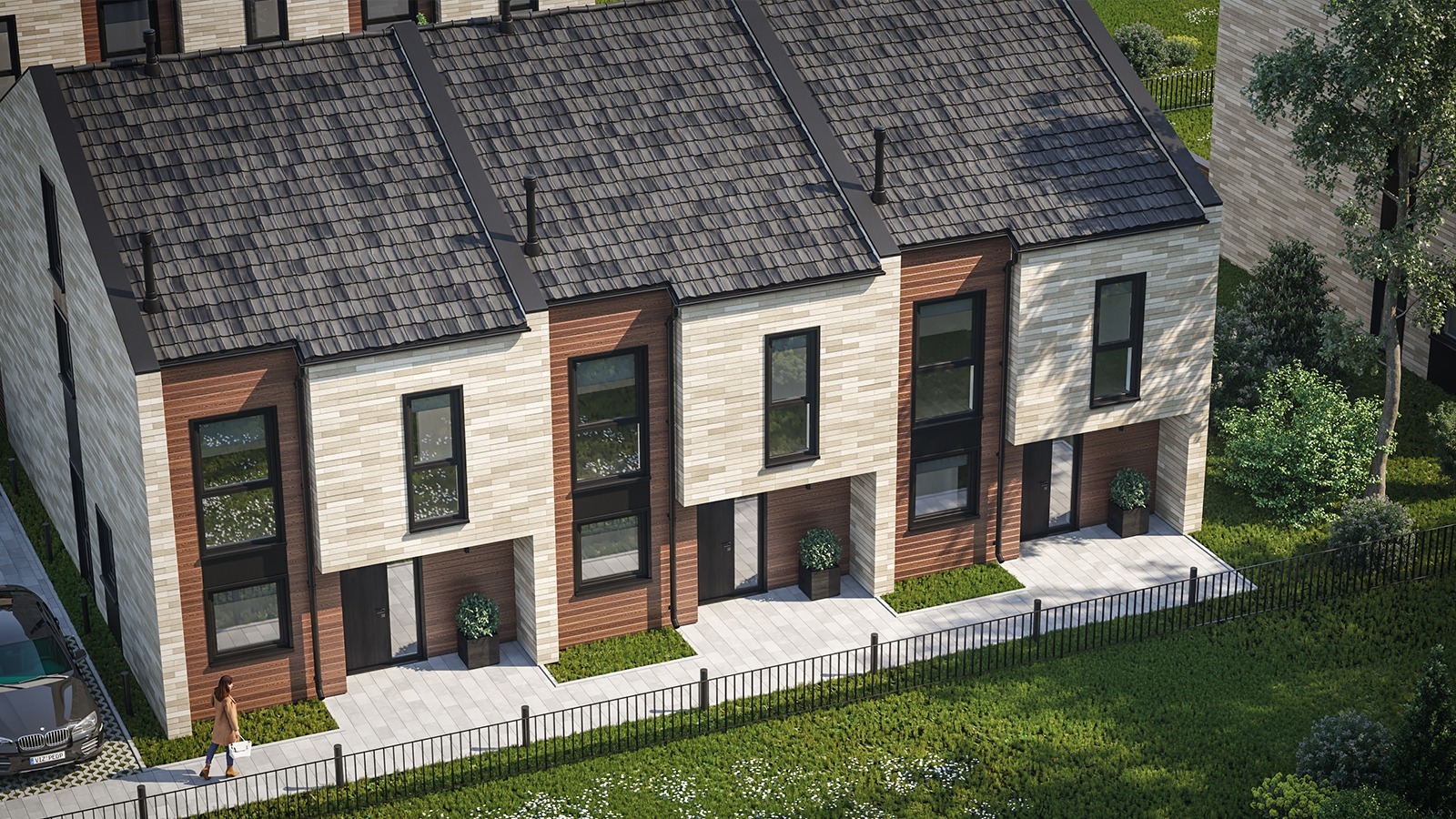 Verfügt über 3 Wohneinheiten im Reihenhausstil